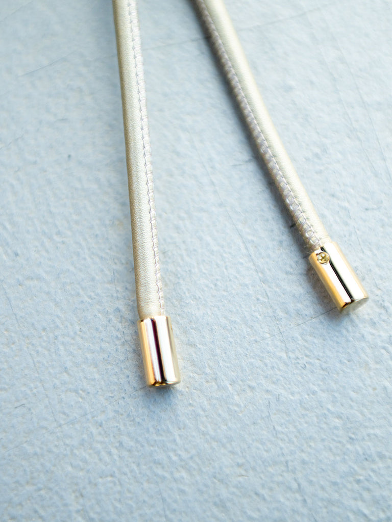 合皮ならではのハリと自然なツヤ感を活かし、職人により丁寧に編み込まれたレザー風素材。手に取ったときの程よい重みと質感が、高級感をプラスしてくれます。金具部分にはリュクスな輝きがあるメタル素材を使用し、アクセントとしても上品に馴染みます。